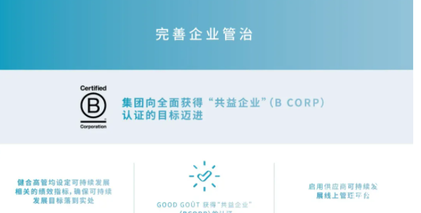 健合集团CEO安玉婷(Laetitia Garnier)表示:“我们确信,如今团队对可持续发展的意识不断提高,正帮助我们作出更好的商业决策,同时更有意识地创造共享价值。”如今,集团旗下已有品牌获得“共益企业”(B Corp)认证,进一步推动集团向全面获得 共益企业认证的目标迈进,推动商业向善,致力于实现集团的愿景:让人们更健康更快乐。