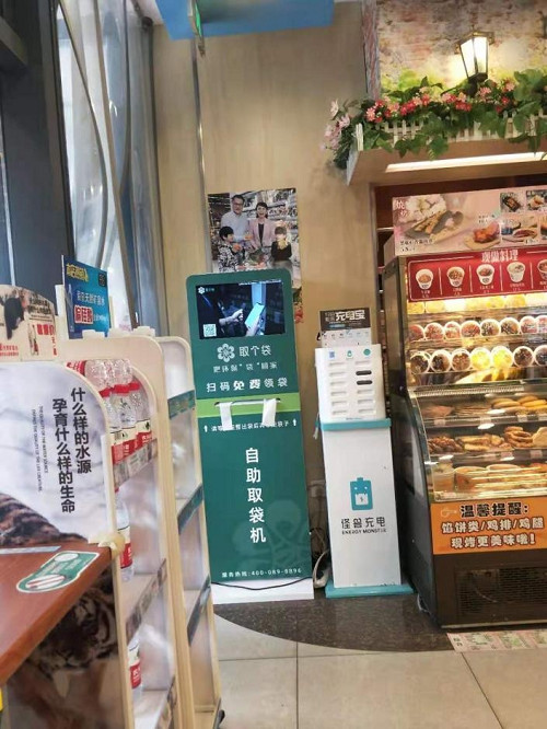日前,由绿联智能自主设计研发的智能取袋机——取个袋先后出现在部分超市、农贸市场的出入口,方便市民取用可降解塑料袋,助力限塑令的执行。