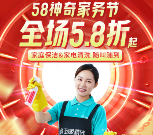 4月29日-5月9日期间,58同城到家精选推出“保洁清洗全场8折”、拼手速限时秒杀、特惠日常保洁服务等多重惊喜消费体验,同时,平台甄选优质商家,严格执行服务质量和售后标准,以品质化服务和大力度优惠激活消费者需求,助力商家实现订单增量。