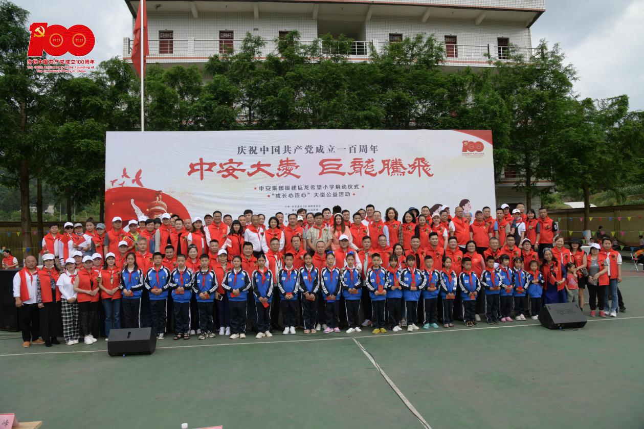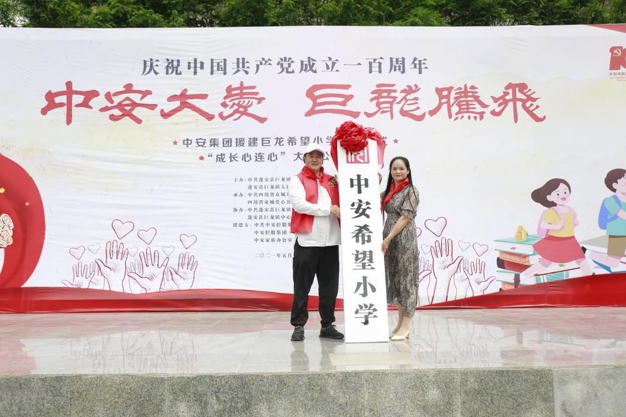 活动在歌曲《没有共产党就没有新中国》中正式拉开序幕。在捐赠现场,中安控股集团向学校捐赠110万元,指定用于学校平房教学楼改建和校园文化长廊建设,正式援建中安希望小学,助力蓬安县教育事业的发展。