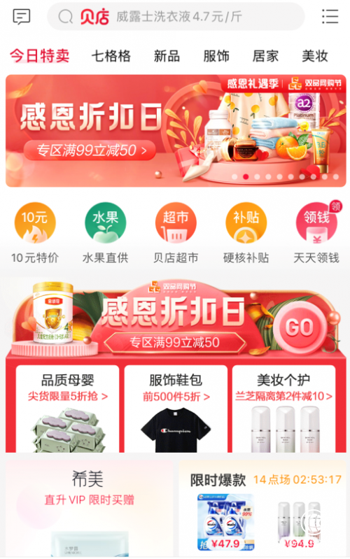 贝贝集团以旗下两大平台希美、贝店为主阵地,集结集团自主品牌及战略合作品牌商全面参与此次活动。希美开启“限时特惠”活动,多款产品限时直降直接让利消费者,贝店平台更是4月23日便开始活动预热,专题开设“2021贝店双品节”,上线“感恩礼遇季”“品牌国货”“绿色助农”“五一出游日”等专场优惠活动,将品牌品质落到实处同时让消费者享受实打实的优惠。