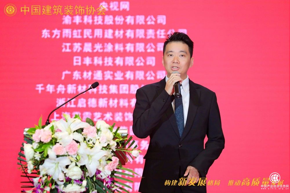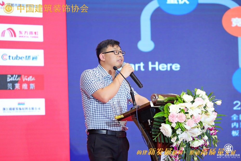千年舟集团大客户总监汪腾做了题为《定向发力,赋能产业发展新趋势》 的演讲,千年舟一直致力于绿色健康环保材料的研发制造,在技术、产品、服务、运营等方面不断创新与转型,研发了负离子板材、天然豆香板(天然环保型板材)等十四大品类、五大系列,为消费者打造绿色健康家,为精装修行业赋能。