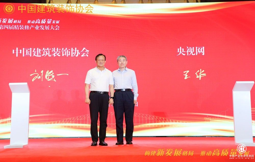 ▲中国建筑装饰协会会长刘晓一、央视网副总编辑王华签署战略合作