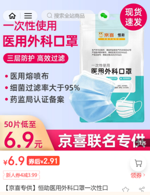 恒助品牌“京喜独有生产线”,定制下沉新兴市场的医用口罩