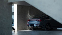 整体车型运动感十足,俯冲式低趴前脸,配合溜背设计,以及极富肌肉感的流畅线条,车身整体呈现出“长背短尾”的完美比例。车尾延续了车头和车侧的动感基因,贯穿式尾灯拉宽了尾部,斜飞入左右两翼,在黑暗夜晚依然能感受到现代感和科技感。
