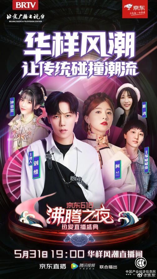 直播盛典在北京卫视 、腾讯视频、京东直播、微信视频号(京东JD.COM)同步播出, “4+1”多路直播的全新模式,打破传统电商晚会的边界,重构电商晚会的想象力,以“拥抱热爱,热爱让生活更精彩”的超凡力量聚拢多元热爱,为美好生活助阵。