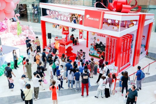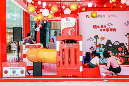 红白金经典配色的巨型礼物盒空降核心商圈,远观即可触发人群好奇驻足,想靠近一探究竟。走进旗帜奶粉快闪店更是惊喜连连:穿越时空的任意门让孩子们在惊喜中学会关爱他人,“国家专利”工厂牧场管道滑梯让小朋友们化身“鲜活因子”畅快游玩,还有充满童趣的暖心礼物拍照打卡、动手动脑的益智积木体验区……一系列的互动活动,让孩子们在神秘、惊喜、感恩、欢乐的氛围中,获得心灵滋养,畅享不一样的六一。