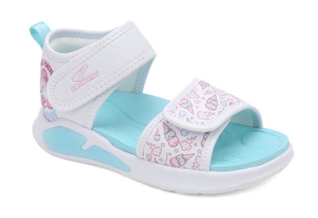 蒂芬妮蓝鞋底,冰淇淋图案装饰,清凉莹澈,活力动感十足;前面与后面都设有便捷魔术贴,灵活调节舒适度,适合不同脚型;宽大鞋头,脚趾自由活动,避免脚趾受挤压,穿着舒适舒畅;独角兽图案,Q萌可爱又童趣;发泡EVA大底,轻便舒适。