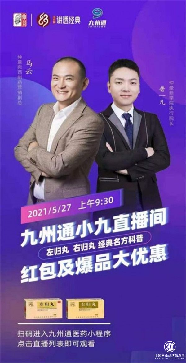 2021年5月27日,九州通医药集团21周年庆之际,仲景宛西制药营销公司总经理马云、仲景商学院执行院长普一凡做客小九直播间,在为观众带去满满福利的同时,也将仲景“三分钟讲透经典”带去直播嘉年华,让经典中医药的魅力广泛传播。