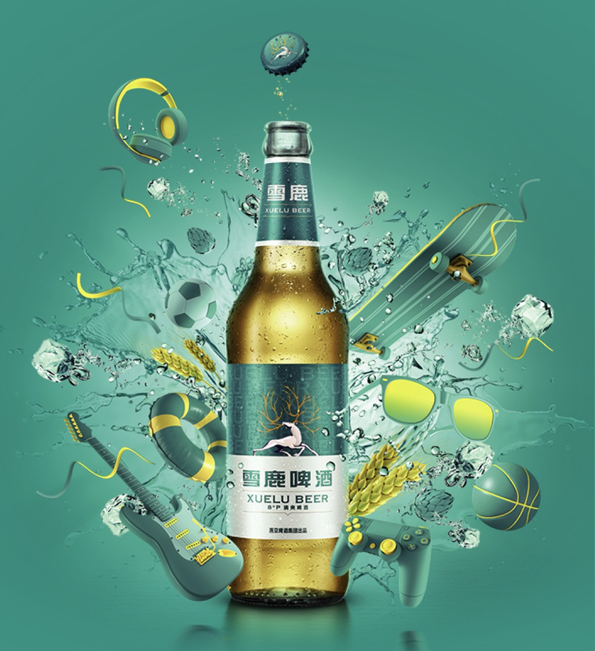 此次雪鹿啤酒启用了全新的包装设计:酒标白色、绿色加上金色张扬的鹿角,宣告我的青春里,所有的色彩缺一不可;一头奔跑中的雪鹿形象, 独立自由。通过一系列律动的色彩,渲染青春撞击,万物又皆为色彩,演绎种种流动的活力;视觉冲击更强烈,更易与年轻人产生共鸣。