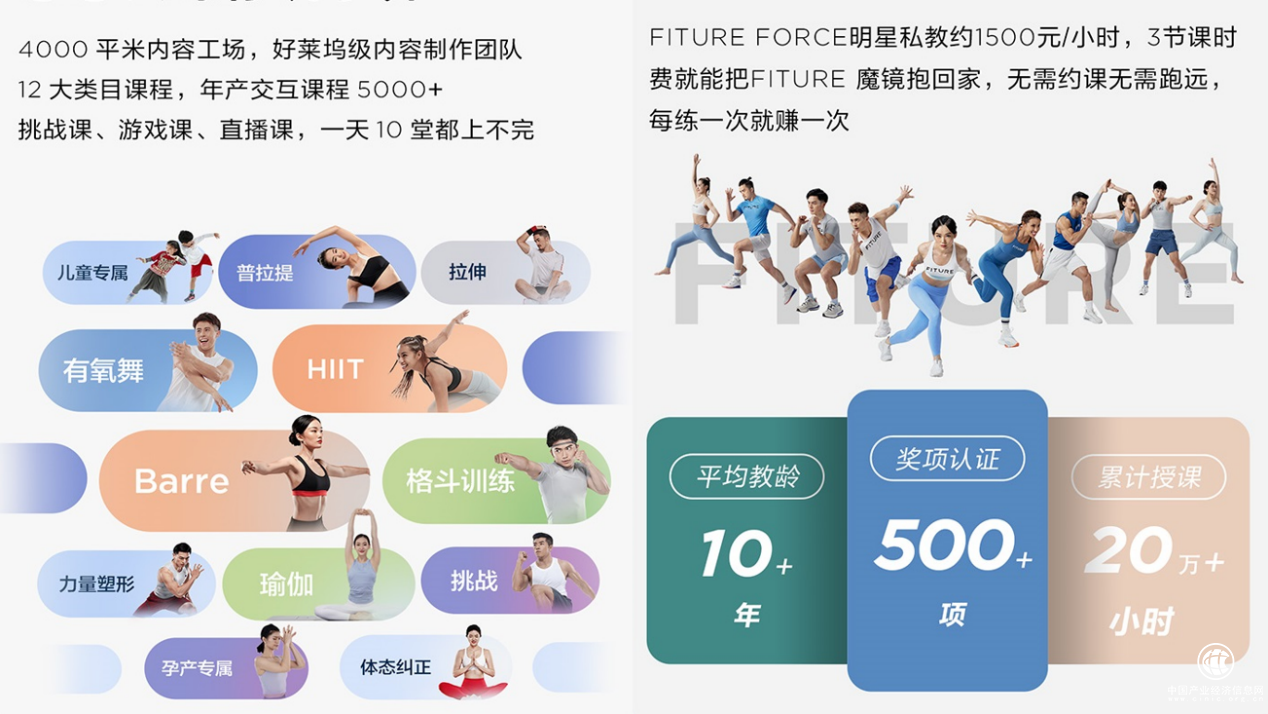 在自制内容方面,FITURE现已签约近20位健身教练,组建了一个累计授课时长超20万小时,平均教学经验10年以上,累计奖项认证500多个的“FITURE FORCE全明星教练团队”。在对标好莱坞影视制作规格来打造的“健身梦工场”,FITURE的内容团队可通过一个囊括教练、拍摄及后期、音乐、开发和AI的数字化“交互内容创作管理系统”实现全年5000节健身课程内容更新的产能。