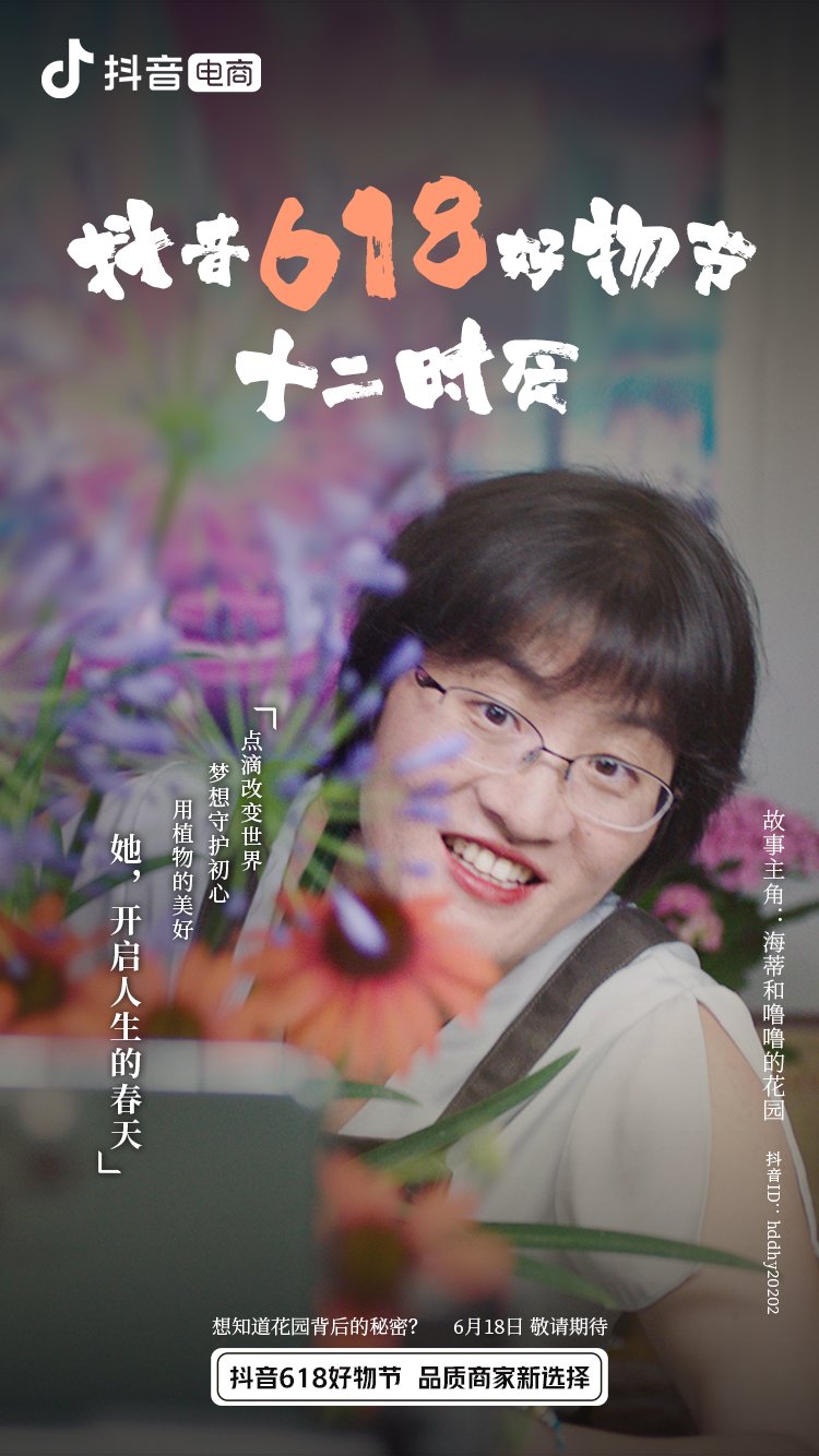 为了让观众和粉丝们更加直观的了解幕后的商家和达人,抖音电商将在抖音618好物节当天,特别推出纪录短片《抖音618好物节十二时辰 》,该片以“海蒂和噜噜的花园”和“子安”两位抖音电商的商家和达人做为记录对象,通过真实的故事,讲述不同商家、达人的成长历程,展示出他们完全不同于直播时的另外一面。
