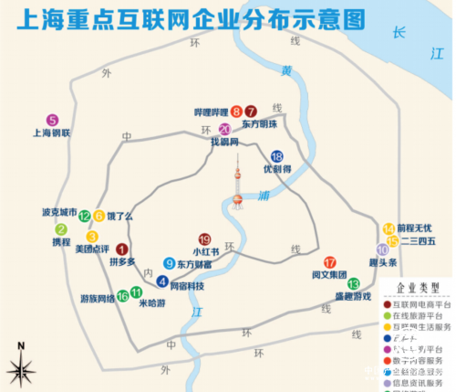 无论是BATJ等互联网大厂,还是B站、小红书等互联网新兴名企都在上海汇集:漕河泾:汇集了腾讯、字节跳动等互联网大厂;新虹桥: 集合了美团、京东、爱奇艺等互联网名企;张江:包揽了小红书、B站、阅文集团等互联网新兴名企