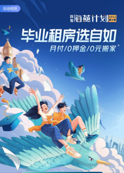 伴随着六月毕业季的到来,广州自如推出了针对毕业生的优惠——海燕计划第九季。海燕计划第九季活动时间为即日起至2021年12月31日,凡是经过海燕身份认证的毕业生即可享受海燕计划专属权益,权益包括月付/0押金/0元搬家。具体活动规则如下:毕业生参与海燕计划认证,提交毕业生信息,认证通过即可获得海燕计划专属租房权益,认证失败也可以获得非毕业生租房大礼包。其中,毕业生是指国内外高校(包括港、澳、台)统招的专、本、硕、博2021届毕业生(专指毕业时间在2021年的毕业生)。认证成功的毕业生即可获得月付、0押金、0元搬家的专属租房权益。海燕计划发从第一季发展到第九季,惠及了一批又一批的毕业生,赢得了良好的口碑,备受毕业生青睐。