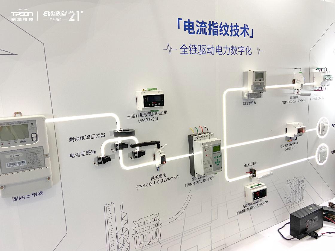 本届EPOWER全电展上,拓深科技通过搭建演示展板,集中展示智慧空开、智能电表、智慧用电主机、智能预警监测主机等电力核心产品,聚焦人工智能、大数据、5G等前沿技术,以电力监控运维、能效管理提升、电力安全管理为核心,通过电力数据创造价值,将先进的电流指纹技术融入到电力的各个环节,为发电企业、输配电网、用电企业、家庭用户提供全面感知、精准预警、精细能耗分析的全方位电力AI解决方案,助力电力行业向更安全、更高效、更智能的方向发展。