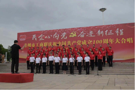 6月16日下午,“民企心向党 奋进新征程”青州市工商联庆祝中国共产党成立100周年大合唱活动在东夷文化广场隆重举行。潍坊市工商联党组成员、副主席赵辉出席并致辞,青州市委副书记、市长宋伟伟出席并讲话,市委常委、统战部部长魏林卿主持,市政协副主席、市工商联主席刘传明宣读倡议书,潍坊市工商联会员科三级主任科员王莉,市委统战部副部长、市工商联党组书记、常务副主席、市非公党委书记李爱美出席活动。市工商联机关全体人员,工商联全体执委,镇街商会会长,市中小企业商会,市新生代企业家商会,直属镇街商会高柳镇商会、益都街道商会,执委企业代表贝隆花园酒店,市志愿者协会,青州商会联盟成员单位市花卉协会,退役军人创业基地等代表,共计1000余人参加了活动。