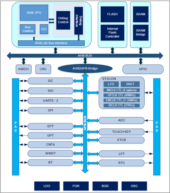 图:APT32F1023模块框图