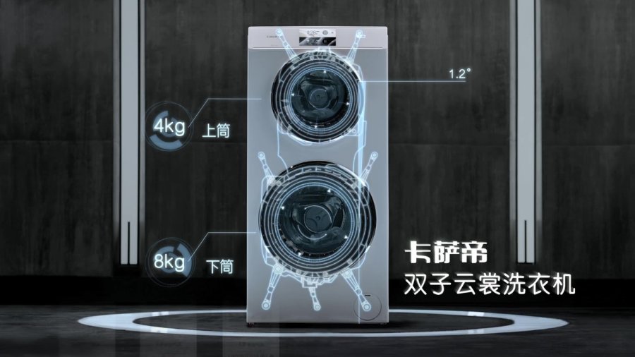 而卡萨帝在2015年推出全球第一台一机双筒“分区洗”洗衣机——双子云裳后,这一习惯终于被打破。卡萨帝的独家技术让洗衣机的双滚筒可以互相牵制、达到极致平衡,从而解决了家庭衣物如何高效分洗的难题。