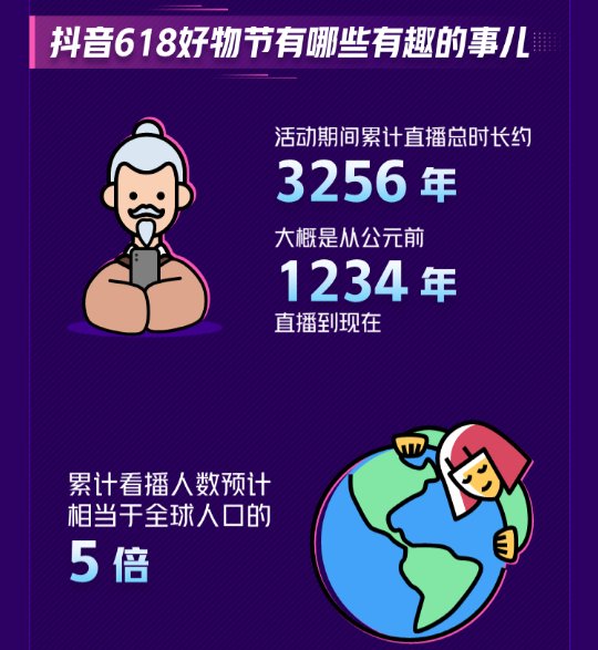今年抖音电商618年中大促已落下帷幕,今日,抖音618好物节出炉热销趣闻数据,从各个维度展示兴趣电商正式入局618大促的成果,同时也通过收集这些数据为商家端后续发展提供新思路、新观点。直播时长、观看人次是衡量电商平台直播效果的重要维度。此次抖音618好物节活动期间累计直播总时长约3256年,累计看播人数预计相当于全球人口的5倍。庞大的流量基数离不开日活超6亿的抖音平台的支撑,与此同时也表明抖音电商针对此次618所做的包括定金预售、正品保障、七天无忧等一系列流量池蓄水、售后保证举措取得了良好成效。