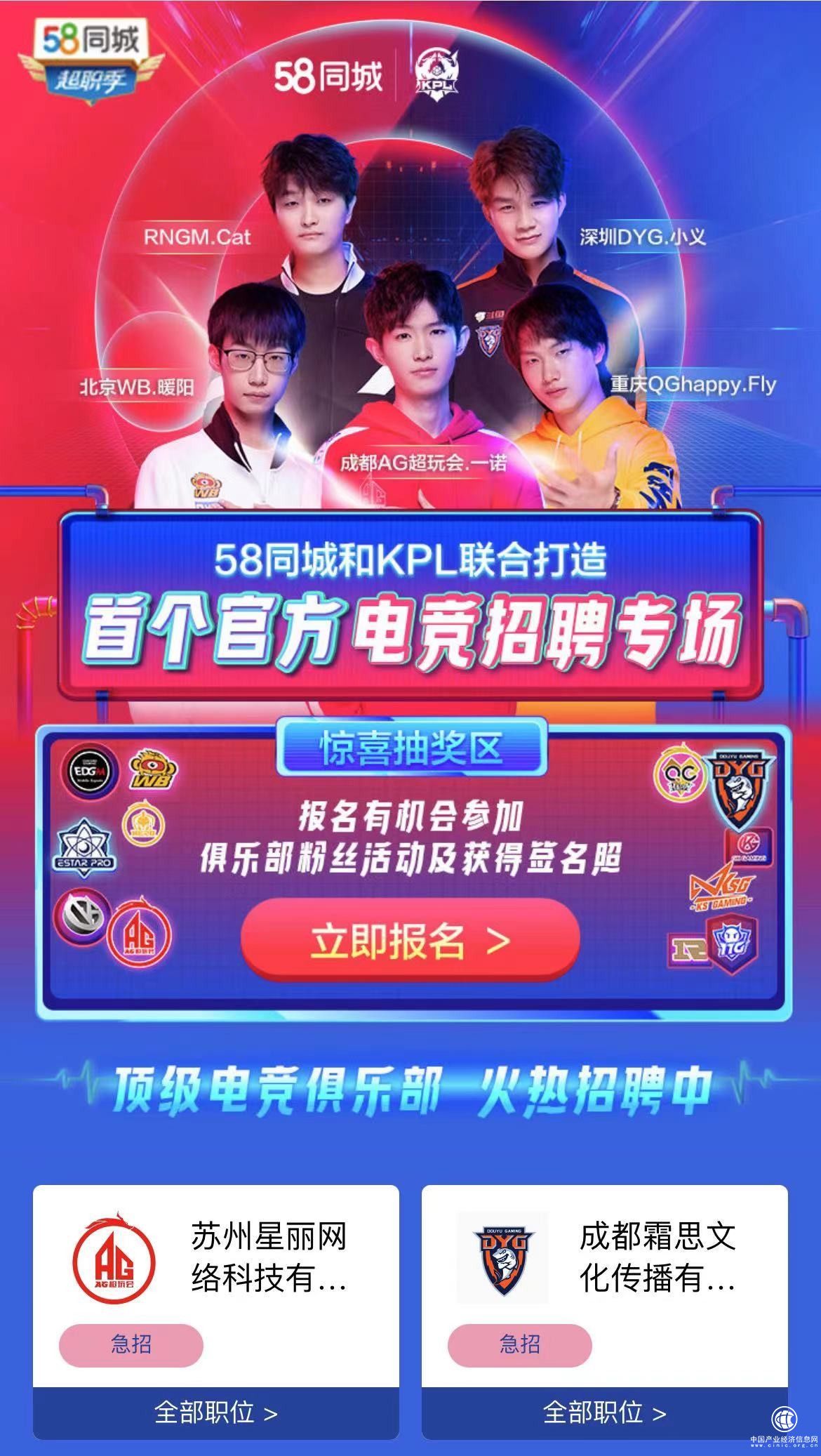近年来,上海、北京、广东、海南等多个城市明确发文鼓励电竞产业发展,国家体育总局、文化部、教育部等五部委也曾多次将认定为电竞相关的职业认定为新职业。58同城此次重磅打造电竞专区,希望借助平台流量、大数据等优势,聚合企业职位强展示,畅通更多优质企业与求职者沟通渠道,降低双方沟通成本,助力电竞行业人岗高效精准匹配,同时也将借助电竞招聘专区打响2021年58同城超职季第一枪。