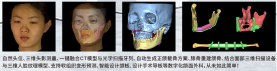 另外,RDS-FC BodyScan 3D智能面部扫描仪自带的颜面管理系统(颌面外科版),可用于数字化颅颌面整形,可对自然头位、三维头影进行测量,一键融合CT模型与光学扫描牙列,自动生成正颌截骨方案,腓骨重建颌骨,结合面部三维扫描与三维人脸纹理模型,实现软组织变形预测、智能设计颌板、设计手术导板,让数字化颌面外科实现数字化、可视化、精细化。