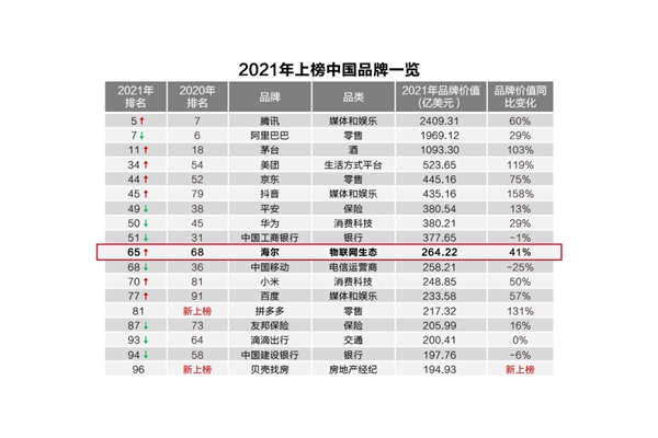 6月21日,全球知名品牌资产分析机构——凯度,在戛纳国际创意节发布了2021年“BrandZ™ 最具价值全球品牌”榜单,中国海尔成为“物联网生态”品牌类目下唯一上榜品牌。