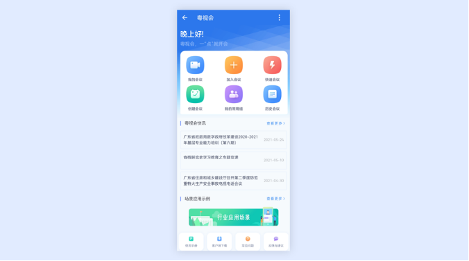 粤视会依托省内政务领域全覆盖的优势,基于一张通讯录纵横贯通沟通协同。可按时按需召开各级视频会议以及日常沟通,全方位满足各类线上音视频通信。“过去开会,需要定点参会,村委会的会议还好,县级的会议就需要坐长途,一来一回得花一天。现在有了这个应用,远程就可以参会,移动办公非常方便,也符合疫情防控的要求,极大减轻了我们工作负担”一位基层干部向笔者介绍到。