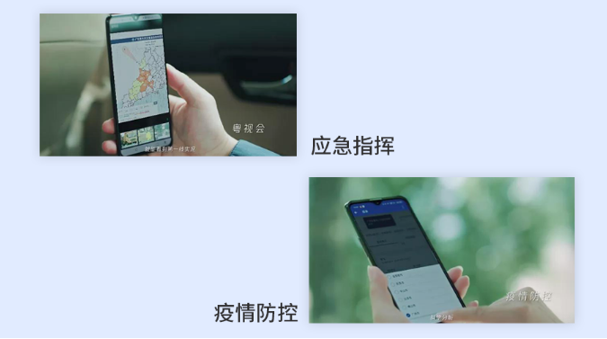 全省启动疫情防控应急响应以来,广东省政府以数字化手段落实各项疫情防控措施、信息共享和政策快速下达,完善线上政务服务、物资保障和求助渠道等,通过粤视会建成疫情防控视频互动指挥中心,对突发事件快速有效反应,并进行隔离区内外协同,远程接入专家咨询,一线医务人员积累临床治疗经验后也可通过视频对外开展培训,全面支撑全省疫情防控工作。