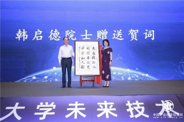 韩启德向未来技术学院赠送贺词——“未来技术必将根本改变世界和人类”,他希望学院不断加深对“未来技术”的理解,更好地整合校内力量,促进学科交叉融合,为推动国家生命健康产业发展作出更大的贡献。