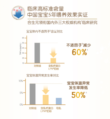 一方水土养一方人,因此不同国家、地区的母乳营养成分含量是不一样的,这个和当地水土、气候、环境等因素有关。正因为每个地域的宝宝所需的营养不同,不同地区的母乳结构也略有不同。调研表明,中国母乳中乳桥蛋白LPN的含量对比丹麦、日本、韩国、美国更高,因此中国宝宝更需要乳桥蛋白LPN,也更适合中国宝宝所需。而刚刚断奶的宝宝,自身免疫机制发育尚未成熟,也面临着很多健康隐患~基于此合生元率先将乳桥蛋白LPN应用于派星奶粉配方之中,是全球首个及唯一乳桥蛋白LPN临床验证配方,为宝爸的成长助力。