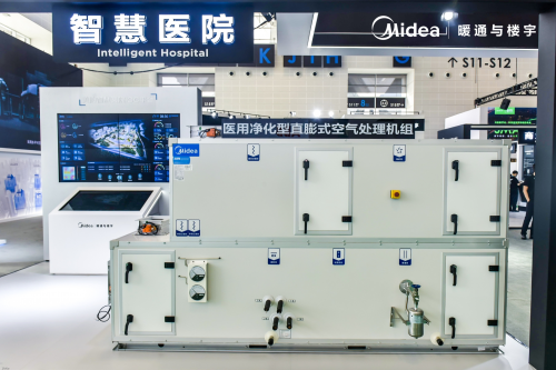 在打造智慧医院上,美的暖通与楼宇提出贯通智慧医院全生命周期的数字化服务。通过与院内信息系统无缝对接,集楼宇控制系统、医疗系统与业务管理系统为一体,实现医院各场景的互联互通,使医、护、患及医院管理者联系更紧密,为医院创造更多医疗服务价值。例如在人流量多、密集的门诊大厅、急诊、普通病房,空气流通尤为重要。美的放置了集中冷源冷水机组和末端系统,能够智能保障新风独立控制、定向排风,更合理的布局气流组织,实现高效节能。