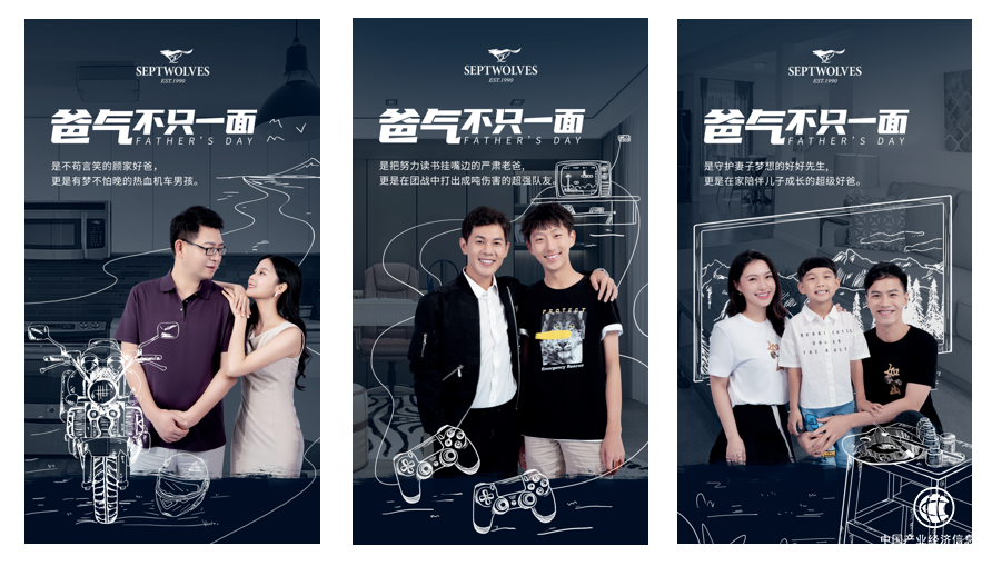 在七匹狼这个特别的节日主题中,父亲不再是常规叙事当中严肃沉重、不苟言笑的样子,而更多展示出个性、可爱、温情的一面,可以和孩子交换心事、并肩作战、共同成长。这不仅仅是叙述模式上的转变,更反应了社会价值观上的转变。当高质量发展成为时代的主题,父亲这个词语,也可以有更丰富的内涵和更广泛的外延。