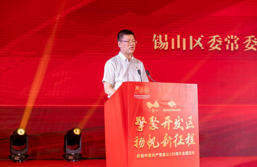 锡山区委常委、锡山经济技术开发区党工委副书记、管委会副主任陶波向受到表彰的“两优一先”先进典型表示热烈的祝贺。陶波指出,开展“擎聚开发区·扬帆新征程”庆祝中国共产党成立100周年主题活动,就是要继承和发扬党的革命精神和优良传统,坚守共产党人的精神追求和政治本色,坚定理想信念、牢记使命责任,以永不停歇的脚步和更加昂扬的斗志,紧扣“园区二次开发、宛山湖科技城开发、战略产业集群、改革创新赋能”四大主线,积极投身开发区“高标打造高质量发展标杆园区”新征程,为锡山“做全市重要增长极、当改革创新先行军”挑最重担子,做最强引擎。