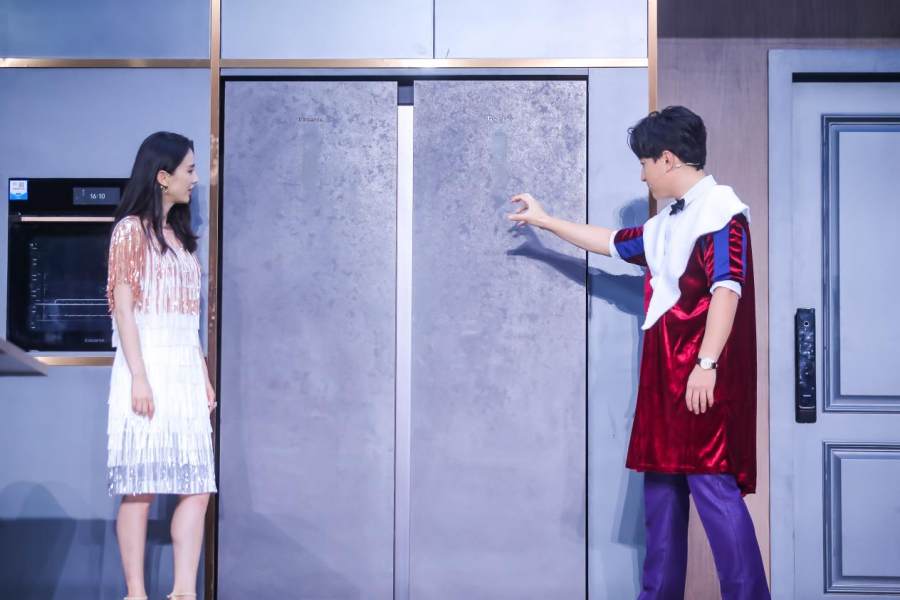 还有一种尴尬也是我们经常碰到的,那就是两手拎了满满的食材时,根本腾不出手来打开冷柜。卡萨帝立式冻藏柜可以感应式叩击开门,现场,银河套系体验官黄圣依也替我们体验了一把:轻轻一敲,柜门就自己打开了。