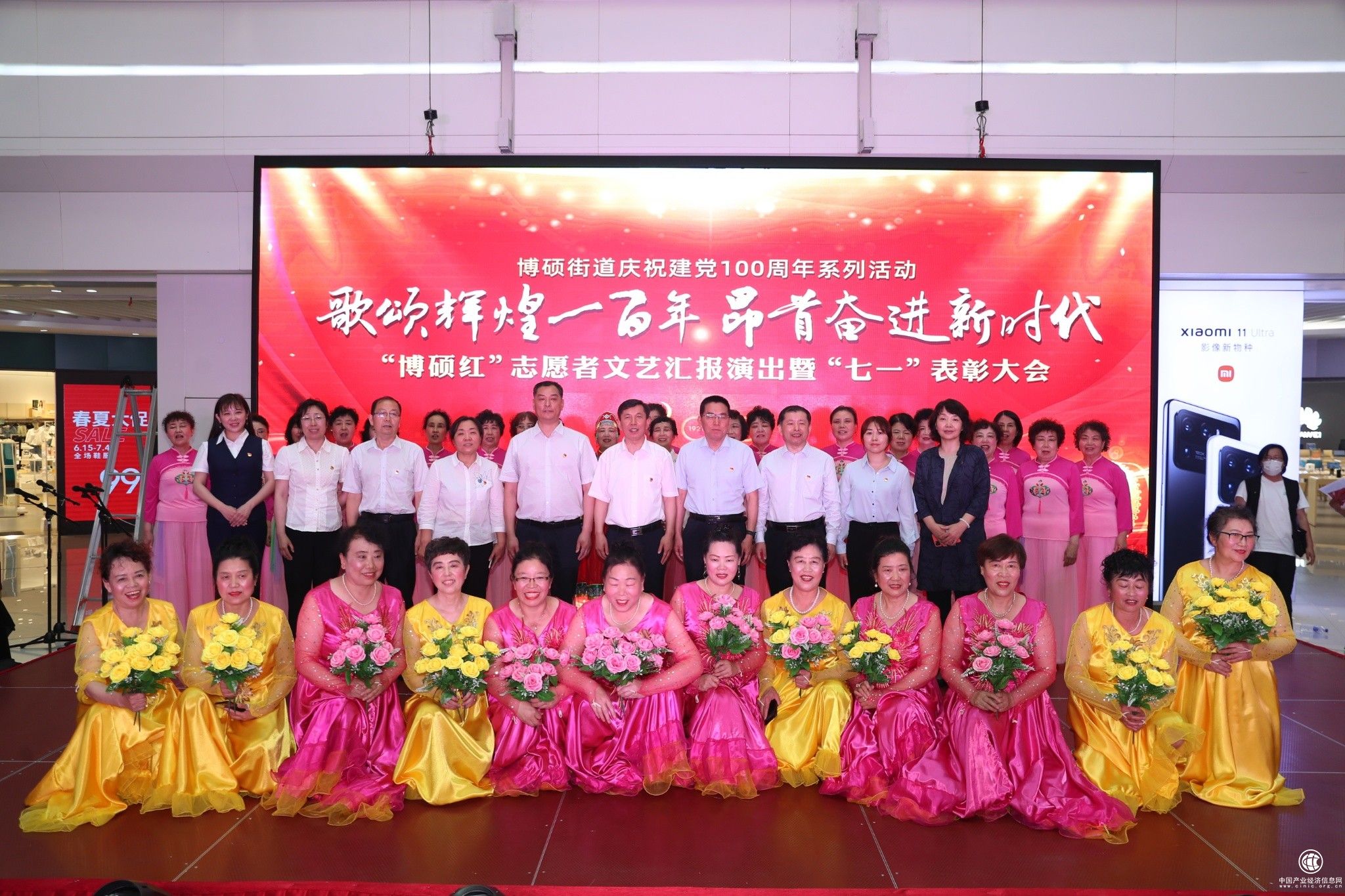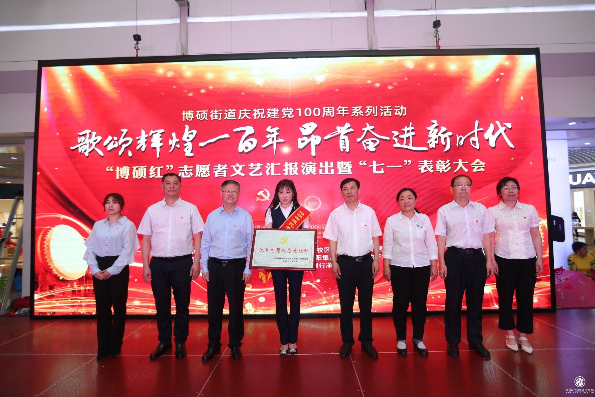 2021年6月28日,净月高新区博硕街道庆祝建党100周年系列活动“歌颂辉煌一百年·昂首奋进新时代”博硕红志愿者文艺汇报演出暨“七一”表彰大会在迅驰广场隆重举行。
