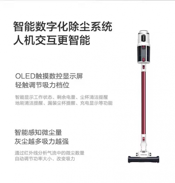 智能性升级是吸尘器最突出的一种改变,也是最让人难以预料的一种改变,很多商家为了能提高智能性大开脑洞,努力科研,将一些看似与吸尘器无关的技术都结合在了吸尘器上,打造了一场科技盛宴。比如说欧洲销量第一的斐纳TOMEFON吸尘器具备了智能除尘系统,国产巨头美的吸尘器实现了吸拖一体,这几年风很大的戴森吸尘器可以通过激光让灰尘显形等,在这里我们要着重说说最让人惊喜的斐纳TOMEFON的智能除尘系统,斐纳TOMEFON的智能除尘系统能够利用红外线探知分析气流中的微尘数量,从而根据微尘数量自动调整功率,改变吸力,做到杀牛用杀牛刀,宰鸡用宰鸡刀,既不会“小题大做”,也不会“盲目轻敌”,让清洁更有针对性,让洁净更易感知,使用起来省心省力还节省资源。除此之外,斐纳TOMEFON的智能除尘系统还包括一块OLED触摸数控显示屏,我们不仅能够通过显示屏清晰检测清洁状态以及机器的工作状态,还能够通过触摸显示屏操控吸尘器,使用起来更加方便。