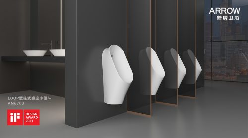 YURI壁挂式感应小便斗AN6701,凭借其圆润柔和外观轮廓,简洁优美造型设计,在2021年德国IF设计奖中荣获金奖,获得评委与众人的一致好评。