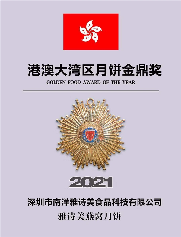 近期,由《省港美食周刊》和国际美食文化交流协会竭力推荐,经业界专家和部分消费者共同品鉴,深圳巿南洋雅诗美食品科技有限公司,推出的一款中秋尚品“南洋雅诗美燕窝流心月饼”,因选材新颖,烘焙精良,口味鲜明,并广取传统酥皮,奶油皮,果蔬皮,混糖皮和前几年流行的冰皮等不同优点和风格;并充分体现出匠心独运的新口味,以及营养丰富,品质经典和造型设计时尚、简约等城市品质,由此斩获了“年度中国酒店及餐饮业最佳服务商品牌”,以及“粤港大湾区月饼金鼎奖”“2021大湾区月饼品质金奖”等三项大奖。