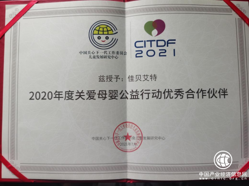 此次荣获“2020年度关爱母婴公益行动优秀合作伙伴”称号,充分体现了中国关工委以及行业对佳贝艾特专注母婴公益行动的肯定。未来,佳贝艾特将继续保持初心,坚定践行企业社会责任,积极投身公益事业,为我国母婴健康水平进一步发展助力。