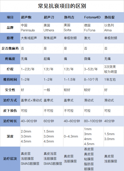 【常见抗衰项目的区别】