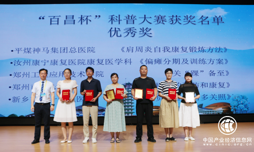 河南省残疾人联合会原巡视员董予德、河南省直第三人民医院院长曹晓强、河南省慈善总会·道健基金负责人陈爱云、河南省物理医学学会会长刘强分别为“百昌杯”康复科普大赛获奖单位颁发一、二、三等奖及优秀奖。