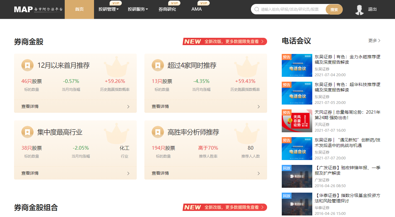 每市旗下MAP投研系统界面