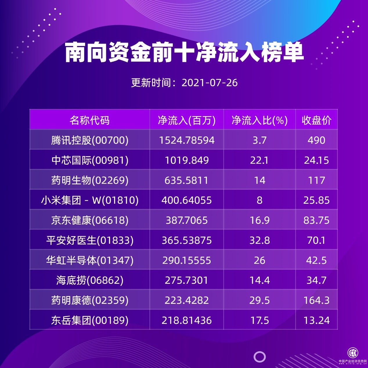 凤凰网港股显示,7月26日,受港股暴跌影响,南向资金净流出26.29亿元,其中港股通(沪)净流出3.55亿元,港股通(深)净流出22.74亿元。但在南向资金前十净流入榜单中,一些优质企业仍然受到追捧,海底捞在该榜单中位列第八,一同入围的还有腾讯控股、中芯国际、药明生物等企业。