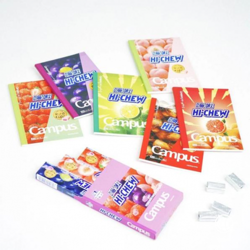 Campus的本子结合嗨啾的最新包装,以水蜜桃、草莓、西柚、葡萄、青柠、可乐等元素,给予了消费者们最佳视觉冲击。