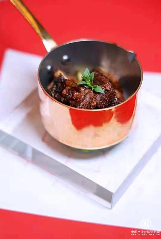 由精选上等的32种食材,用18种工序,经过4小时的文武火熬制成粘稠的复合酱,其中加入了赖茅酒,酒中的2000多种芳香物质使得酱香浓郁,风味突出,腌制牛肋骨24小时,低温慢烤5-6个小时,酱香、酥烂,口味独特。