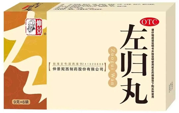 左归丸由六味地黄丸去掉三泄药物茯苓、泽泻、丹皮,加上菟丝子、牛膝、龟板胶、鹿角胶、枸杞子等组成。其方重用熟地滋阴补肾、填精益髓,为君药。臣以龟板胶、鹿角胶血肉有情之品,峻补精髓,其中龟板性味甘咸寒,善补肝肾之阴,又能潜阳;鹿角胶性味甘咸微温,益精补血之中又能温补肾阳,与诸滋补肾阴之品相伍有“阳中求阴”之效。山茱萸养肝滋肾,涩精敛汗;山药补脾益阴,滋肾固精;枸杞子补肾益精,养肝明目;菟丝子平补阴阳,固肾涩精;牛膝益肾补肝,强腰壮骨,俱为佐药。诸药配伍,有益肾滋阴、填精补髓之功,故可治疗真阴不足、腰酸膝软、盗汗遗精、神疲口燥等。