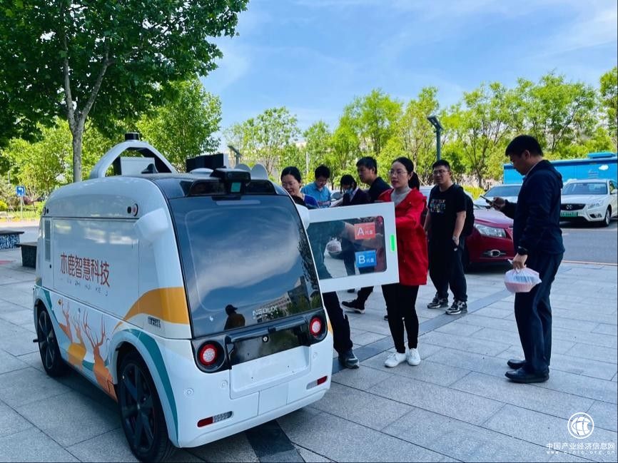 亦庄上班族在写字楼下享受新石器无人车提供的午餐服务(图片来源:Neolix实拍)