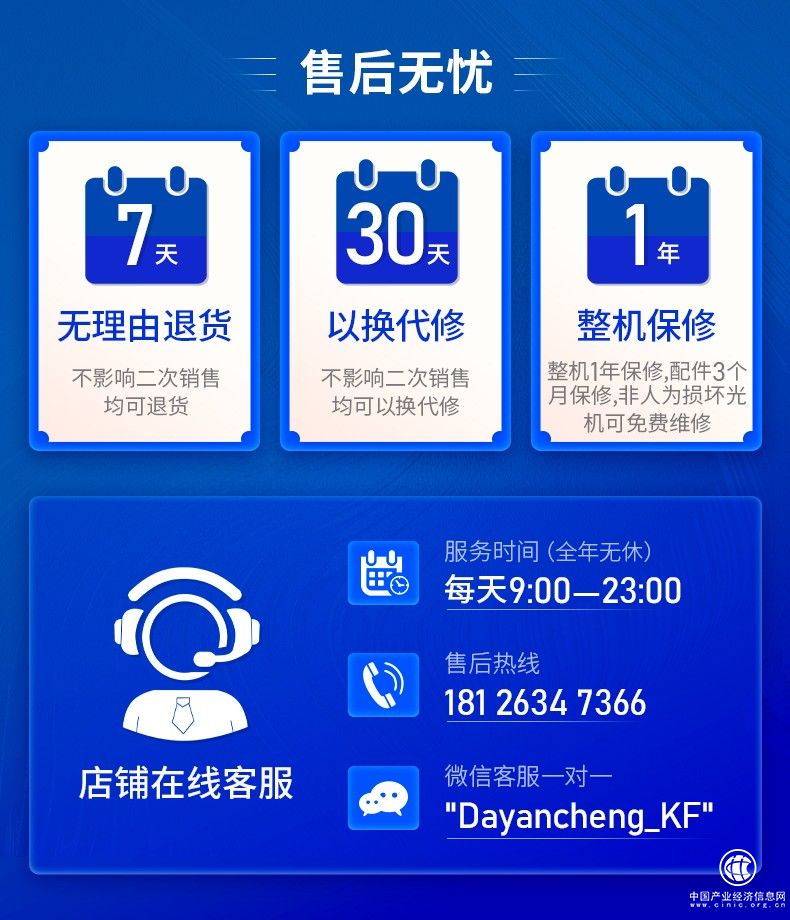 产品售后方面,大眼橙更是严格按照行业标准为客户服务。除各品牌电铺均有的7天无理由退换货外,还有不影响二次销售30天以换代修服务及整机1年保修、配件3个月保修、非人为损坏光机可免费维修的售后无忧服务。
