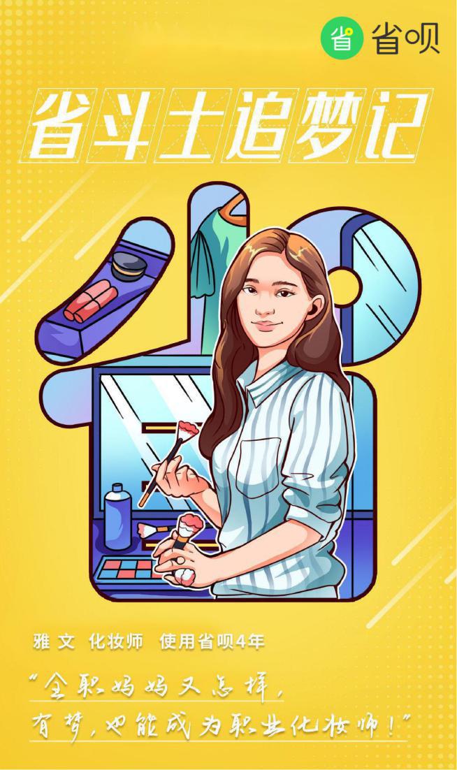 雅文通过省呗实现化妆师梦想的故事,被省呗记录在“省斗士追梦记”中。雅文其实就是普通追梦人的缩影,出于对梦想的执著,成为生活中的“斗士”。无论前方多少艰难险阻,都会满腔热血去实现心底的梦。
