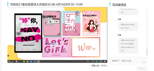 在2021年的学院奖春季征集活动中,毓婷将目光锁定在年轻人普遍存在的社会情绪上,结合自身“信赖、掌控、享受”的品牌调性,将广告主题定为“掌握主动权,活出我的YOUNG”,意在鼓励当代年轻人表达自己的生活态度,勇于释放内心与自我价值,一经发题就受到了年轻学子的高度关注。与此同时,毓婷的全国高校巡讲活动也在如火如荼的开展,从4月初到5月中旬,毓婷线上线下同步进行了24场品牌宣讲,线下打卡全国13座城市13所高校,与近5000名高校学子零距离沟通,谈创意、聊思路;在线上,毓婷成功开展11场创意直播课,包含10场区域直播和1场全国直播,来自广东、湖南、广西、河北、山西、浙江、黑龙江、吉林、辽宁、北京、重庆、四川、河南、安徽等14省高校师生打卡直播间,与品牌代表积极互动。据统计,毓婷春季巡讲活动共吸引了15万高校学子参与听课,创意风暴席卷全国高校。